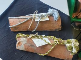 Alunni di una scuola elementare e le tegole dell’Arsenale al Centro di Riuso Creativo.