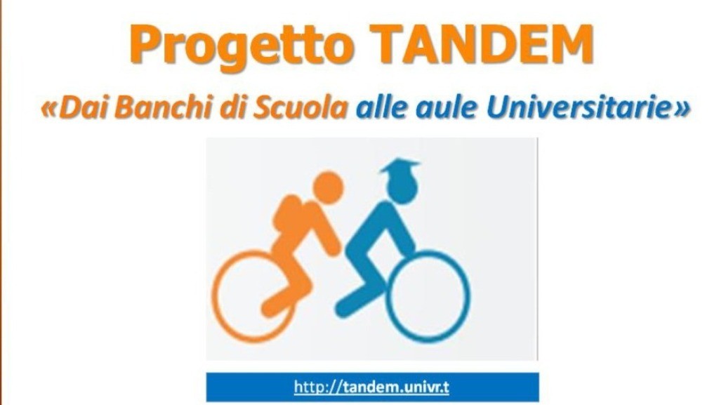 Quest’anno il progetto Tandem, sarà svolto in modalità online per rispettare le norme anti Covid. Tale progetto nasce per mettere in contatto l’università di Verona e le scuole secondarie superiori del territorio così da consentire a ragazze e ragazzi la partecipazione a corsi tenuti da docenti universitari.