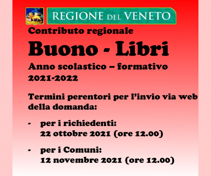 Dalla Regione Veneto contributi buono libri per l’a.s. 2021-2022.