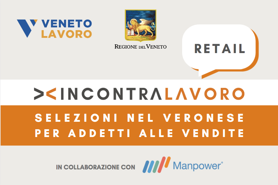 Sono aperte le selezioni per IncontraLavoro Retail, l’iniziativa di recruiting promossa da Regione del Veneto e Veneto Lavoro, organizzata dai Centri per l’Impiego di Verona e di Villafranca in collaborazione con Manpower per selezionare 35 addetti alle vendite da impiegare presso un centro commerciale di Verona.