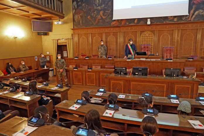 La lezione tenuta dal rappresentante dell’Esercito, il Tenente Colonnello Antonio Mannella, ha fornito ai ragazzi le principali nozioni sui simboli dell’unità nazionale, anche attraverso la proiezione di immagini e video sulla storia d’Italia: