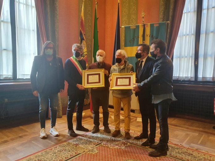 Sboarina consegna la targa di riconoscimento agli autori di “Caffè Amaro” dei Kings.