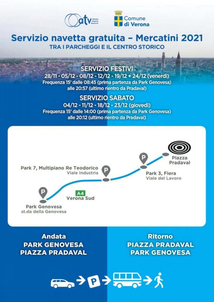 Nei fine settimana sarà possibile lasciare la macchina nel park situato fuori dal casello autostradale di Verona Sud e prendere il bus diretto in centro storico, che passeranno ogni quarto d’ora.