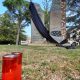 Un drappo nero avvolge il monumento alla pace di piazza Bra.
